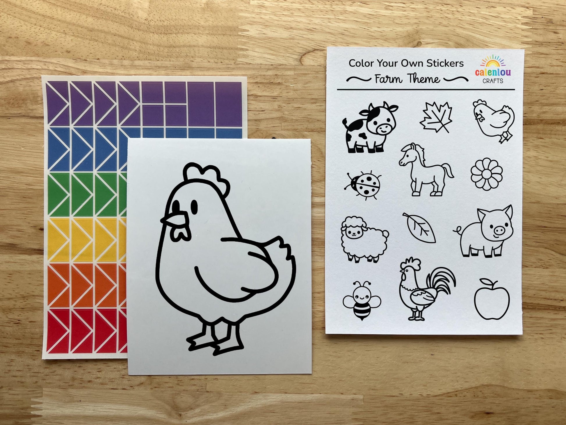 ★ Color your own stickers with markers, crayons, or colored pencils! Each sticker sheet is 5" x 7" and includes matte paper stickers, ranging in size from 1-2 inches.