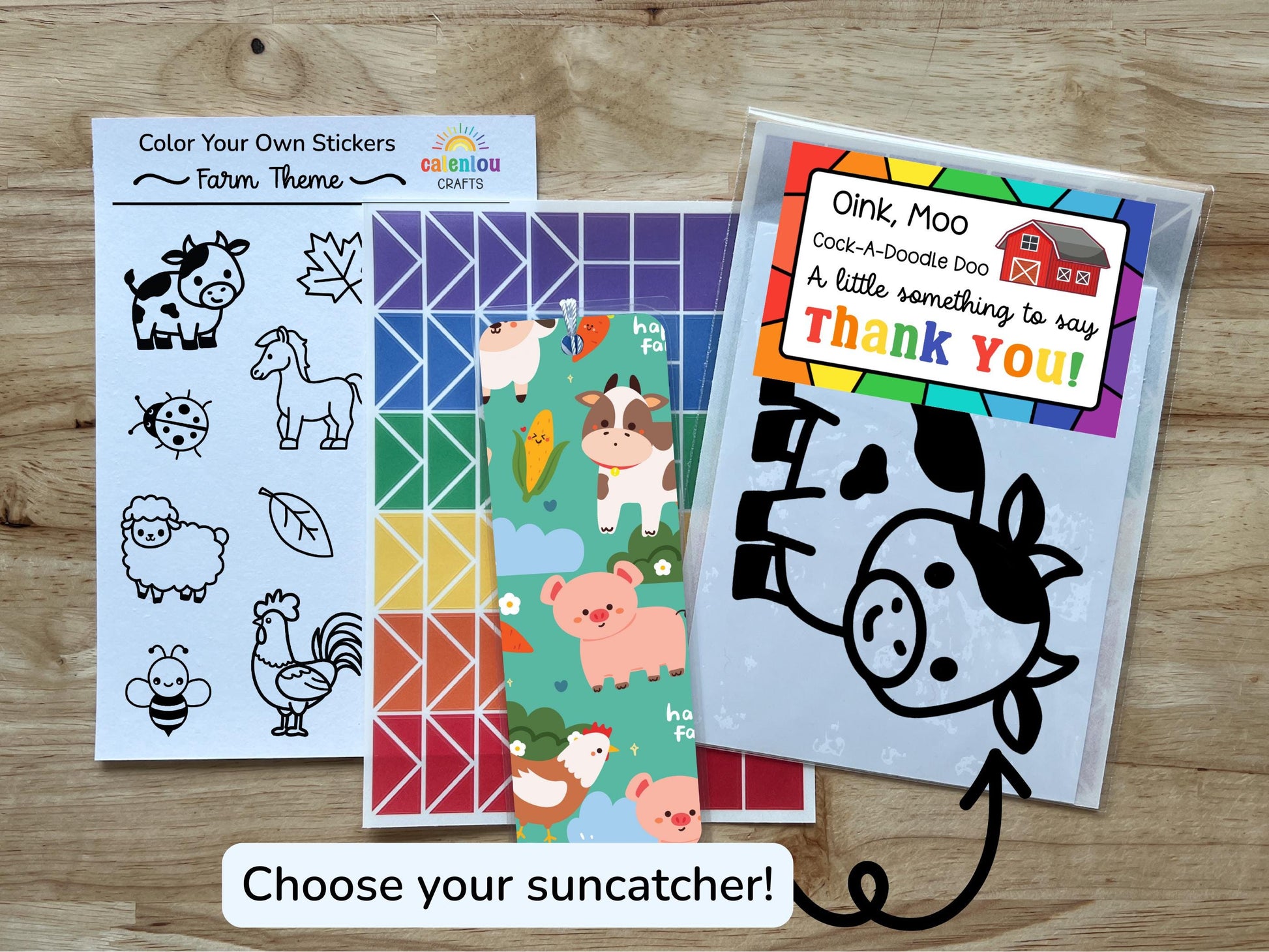 These party favor bags are packed with creative fun kids will love! Each one includes a colorful suncatcher sticker craft (a favorite activity in our house!), a coordinating bookmark, and color-your-own stickers. They're the perfect mix of hands-on, low-mess, and screen-free fun - great for birthdays, classroom celebrations, or just because!