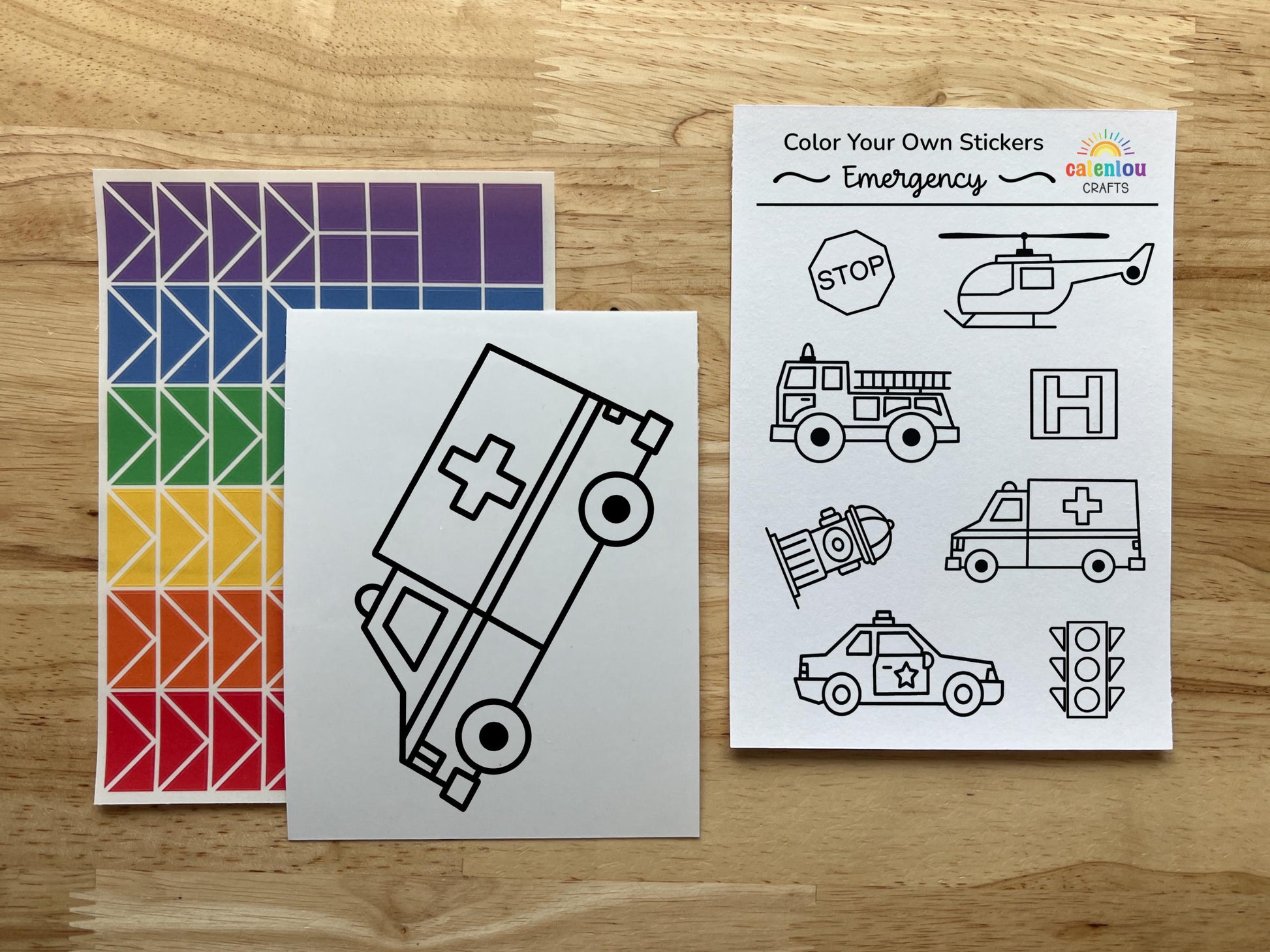 ★ Color your own stickers with markers, crayons, or colored pencils! Each sticker sheet is 5" x 7" and includes matte paper stickers, ranging in size from 1-2 inches.