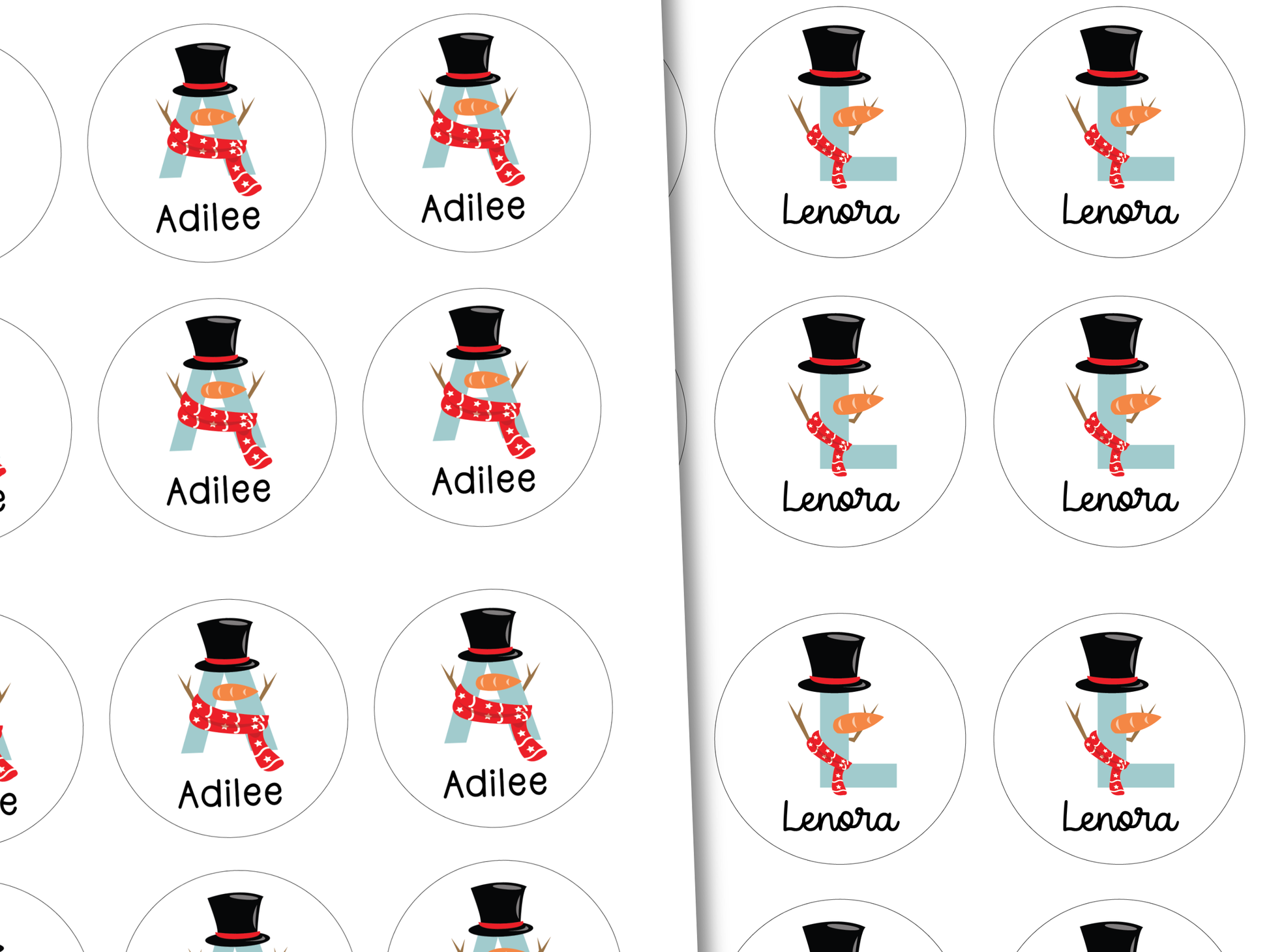 Personalized Snowman Monogram Gift Labels (Set of 12)