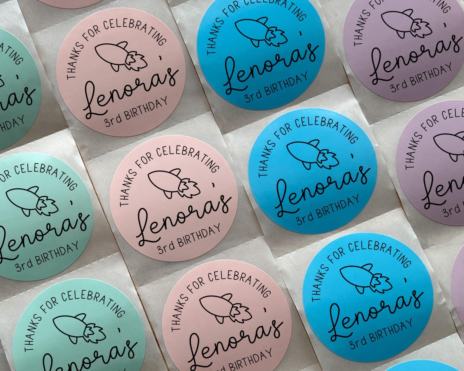 Perfect for birthday party favors, gift bags, treat bags, thank you cards, food packaging, baby showers, weddings, staff appreciation gifts, and more. These simple stickers make gifting feel personal, polished, and fun.